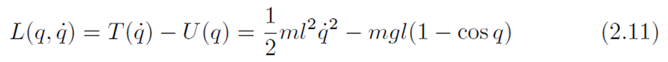 남은 과정은 라그랑지안 함수를 만들고, 라그랑주 운동방정식(식 (2.3))에 적용하여 로봇 동역학 모델을 얻으면 됩니다.