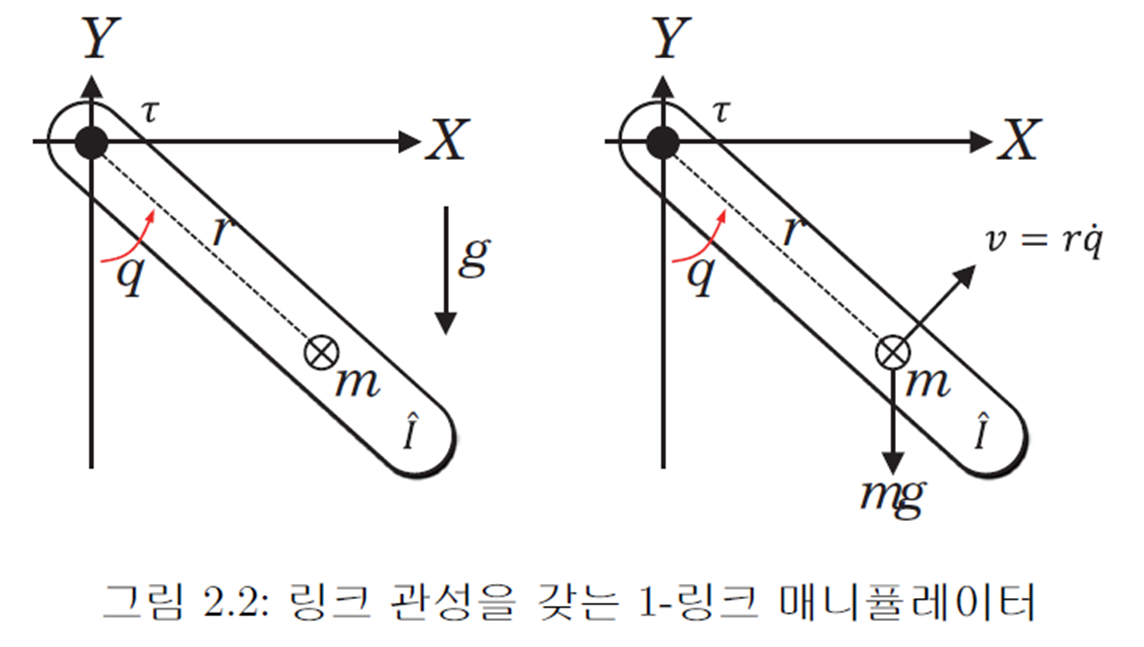 지금까지 살펴본 라그랑주 운동방정식을 1 링크, 2 링크 매니퓰레이터에 적용해봅시다.