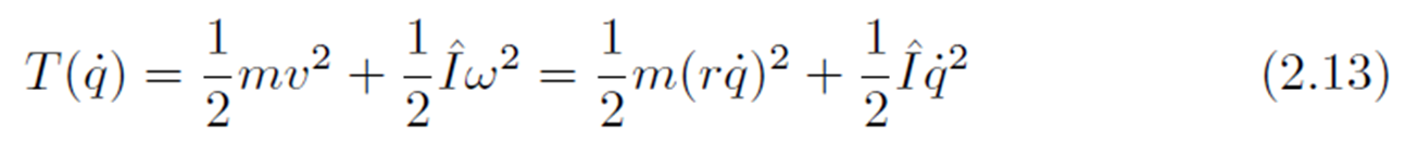 이렇게 각 링크에 작용하는 속도를 구했기 때문에 운동에너지는 다음과 같이 단순한 형태로 정의가 가능합니다.