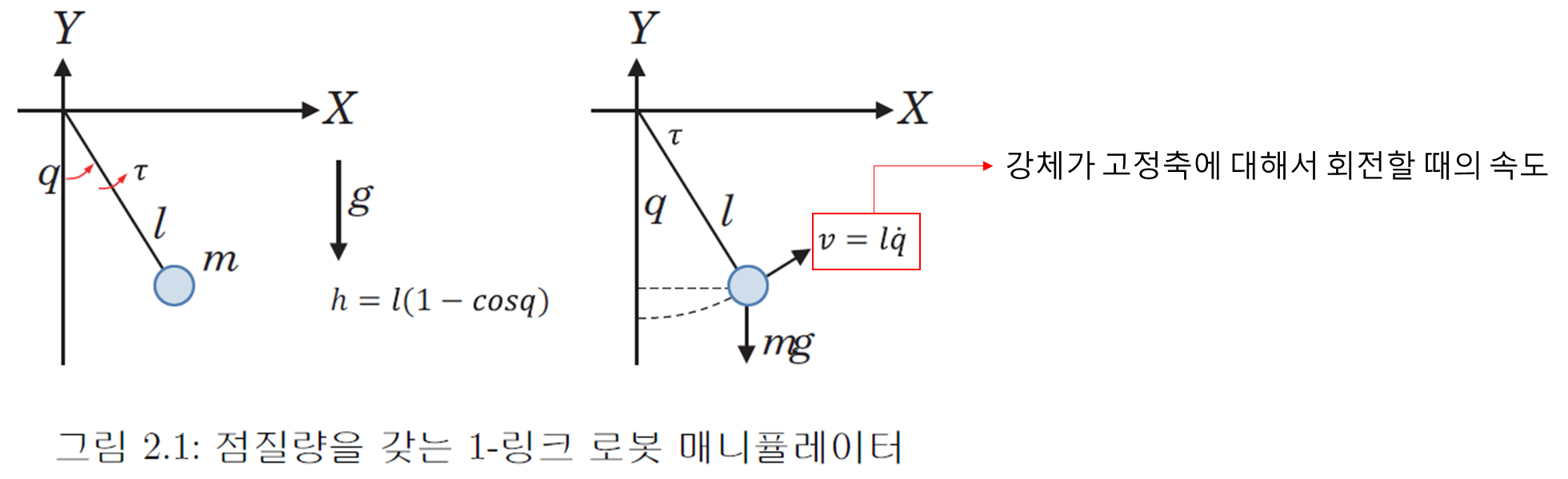 지금까지 알아본 1 링크 매니퓰레이터는 링크가 점질량인 경우의 동역학 모델을 유도했습니다.